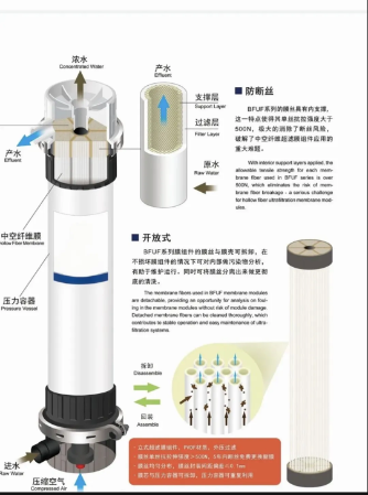 Typ vnútorného tlaku: surová voda tečie z vnútra membrány von, vhodná pre vysokú kvalitu vody so zákalom